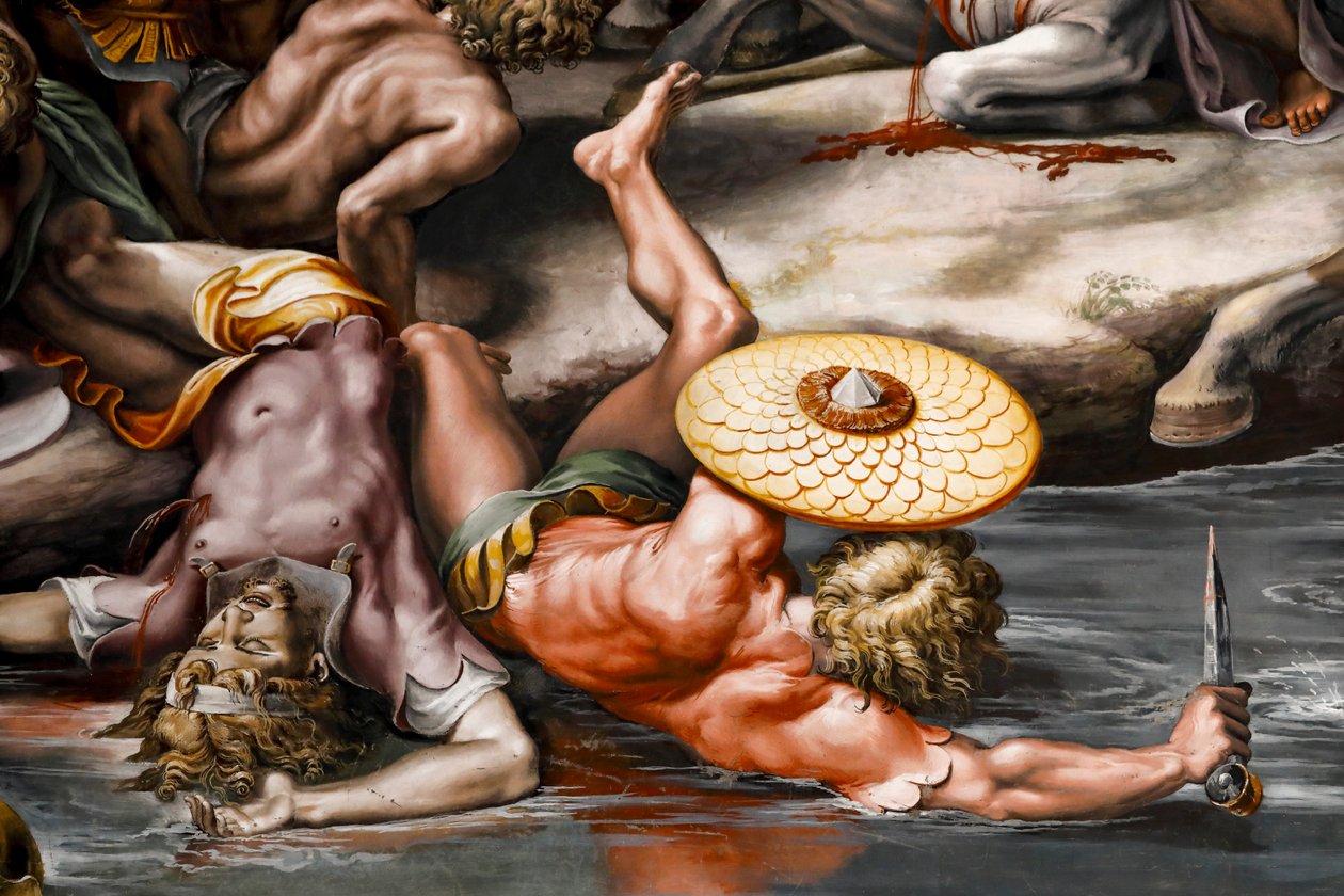 Batalha da ponte Milvian, detalhe. 1517-1524 (fresco)(Battle of Milvian bridge, detail. 1517-1524 (fresco))Raphael |