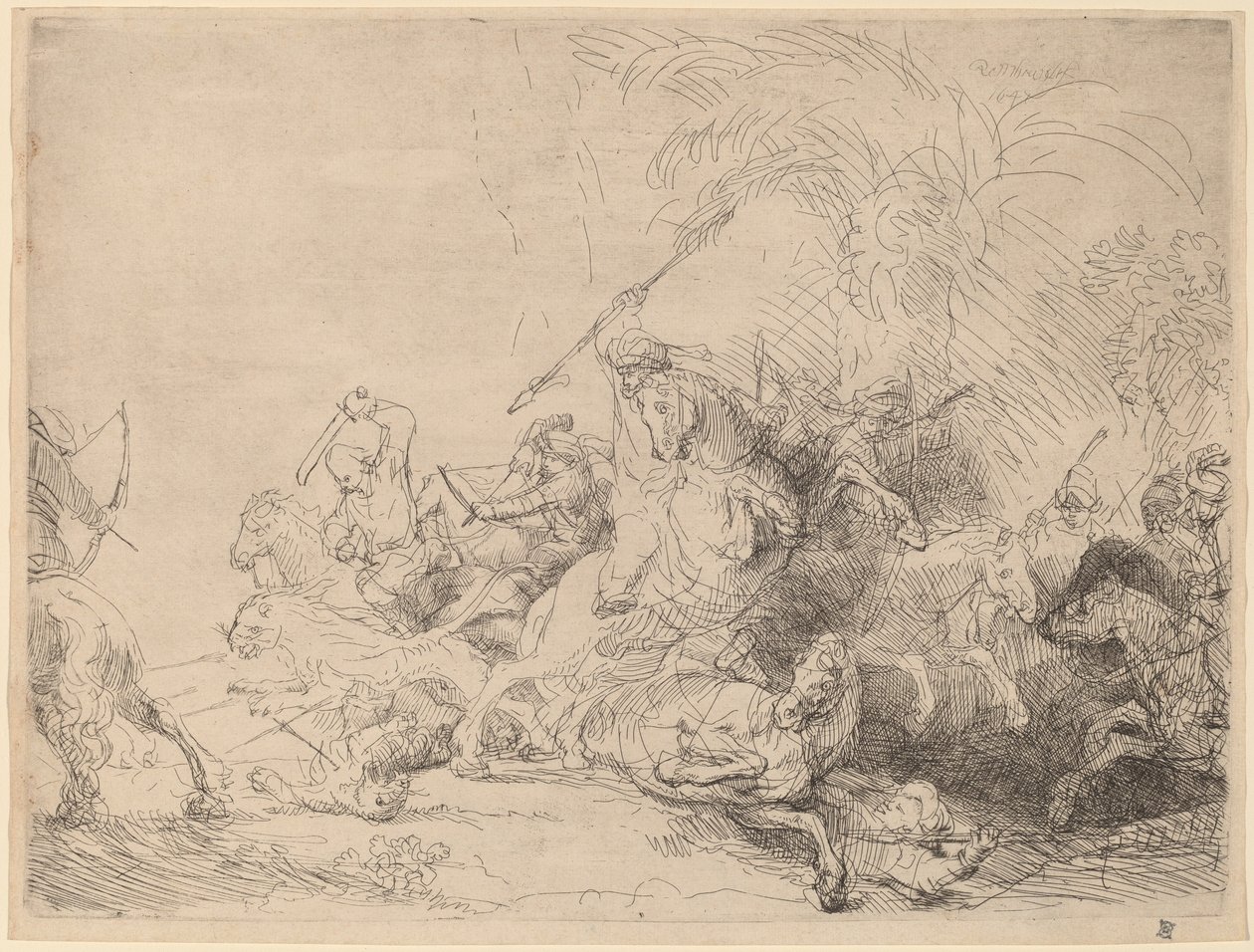 A grande caça ao leão(The Large Lion Hunt)Rembrandt van Rijn |