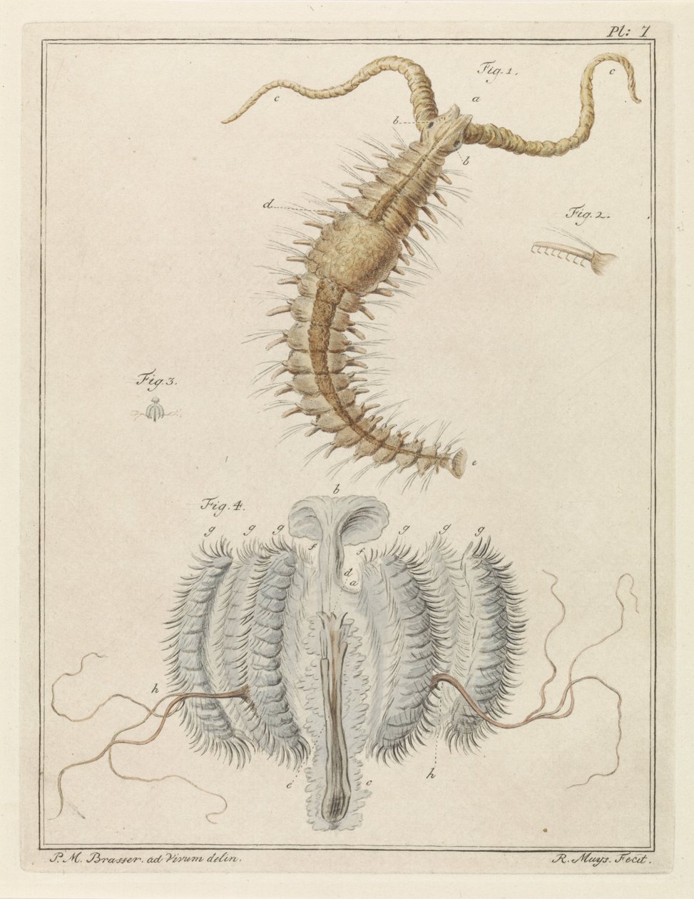 Verme de babado e uma medusa de costela(Franjeworm en een ribkwalletje)Robbert Muys(print maker),P.M. Brasser(after drawing by) |