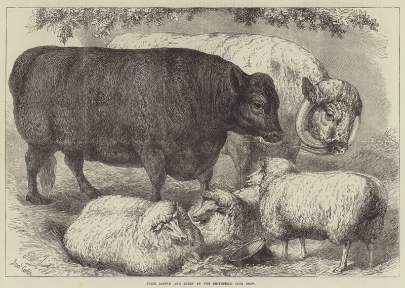 Prêmio gado e ovelhas no Smithfield Club Show(Prize Cattle and Sheep at the Smithfield Club Show )Samuel John Carter |
