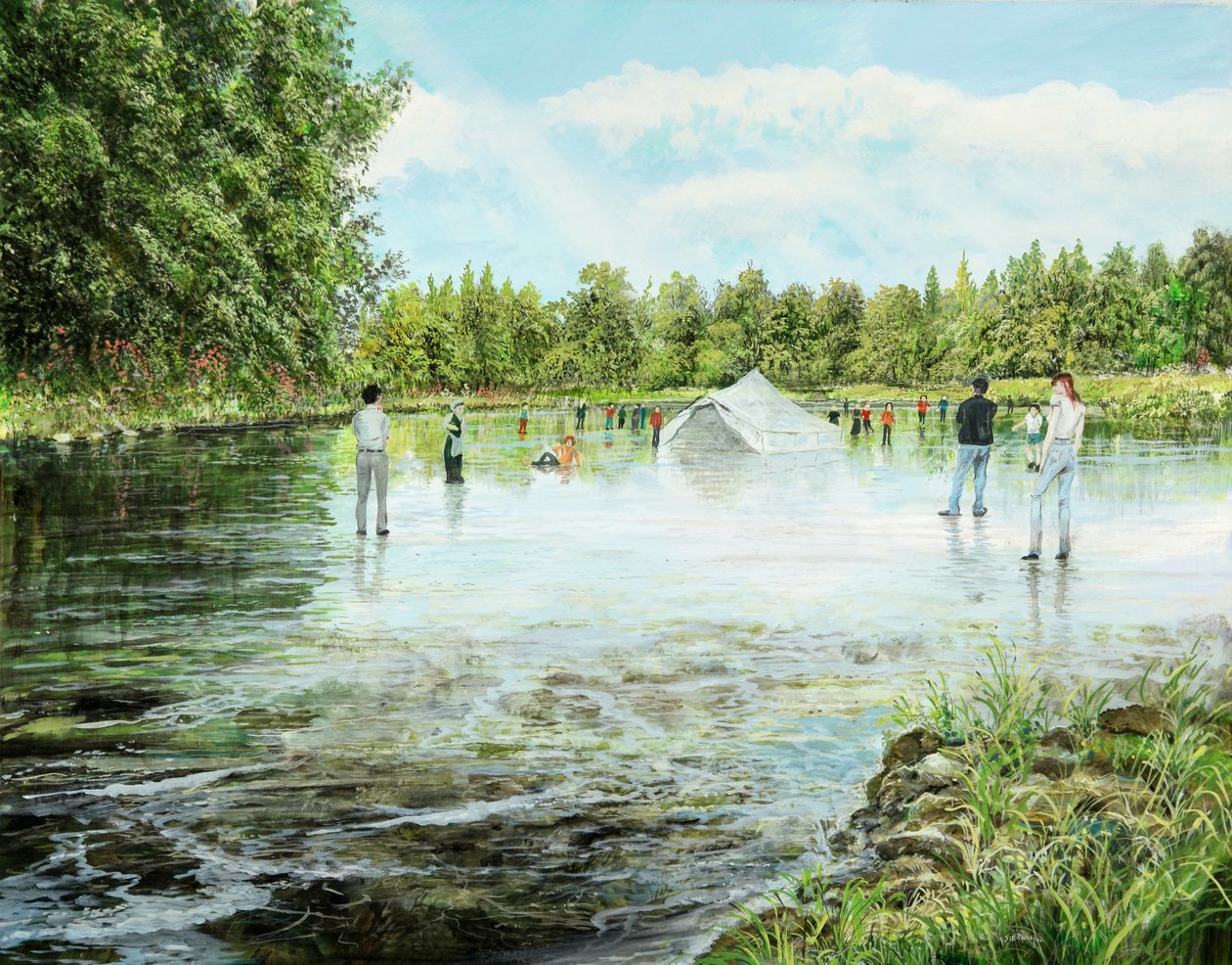 O quadro original intitulado "The Lookers" é uma pintura a óleo sobre tela de 2019.