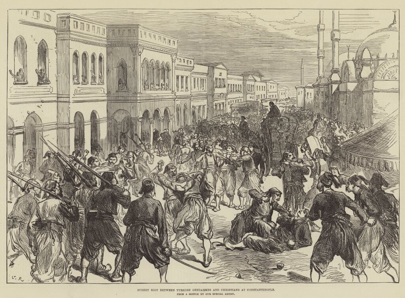 Motim de rua entre gendarmes turcos e cristãos em Constantinopla · Sir John Charles Robinson