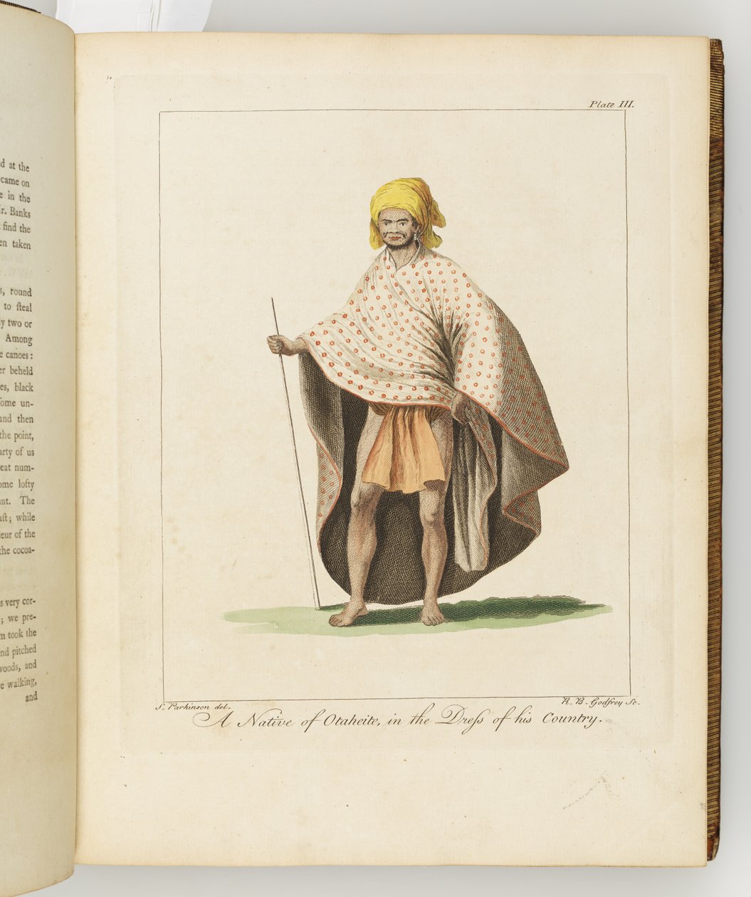Um nativo de Otaheite, ilustração de um diário de uma viagem para os mares do Sul: em seu navio Majestys, o Endeavour, 1794 (gravura colorida à mão)(A Native of Otaheite, illustration from A journal of a voyage to the South Seas : in His Majestys ship, the Endeavour, 1794 (hand-coloured engraving))Sydney |