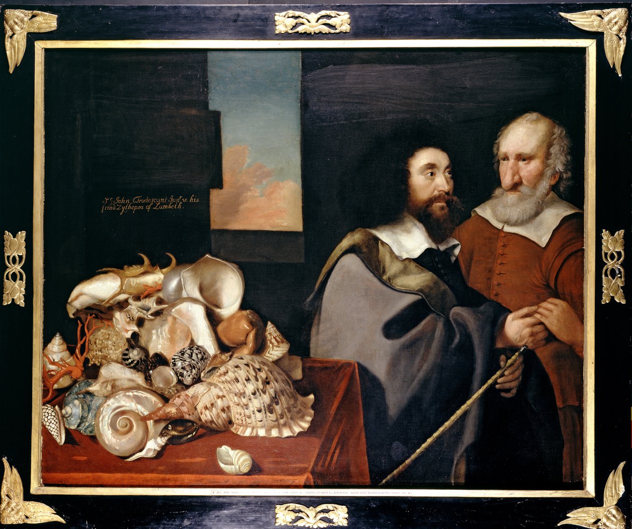 John Tradescant the Younger com Roger Friend e uma coleção de conchas exóticas, 1645(John Tradescant the Younger with Roger Friend and a Collection of Exotic Shells, 1645 )Thomas de Critz |