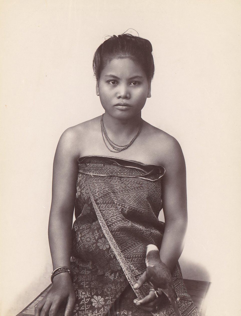 animal · fêmea · mulheres · mulher · povos · animal de estimação · pássaro · pássaros · país · teste padrão · traje · roupa · museu · indonésia · malaysia · fotografia · vestido · traje tradicional · posição · século · textiles · pano · roupa · malaysian · java · tecido · modelado · encontrado com · museu metropolitano da arte · o museu metropolitano da arte · 1ø século · preto branco · preto e branco · malay · cópia do albumen · décimo nono século · photograph · portrait · unknown · heritage art · albumen silver print · albumen silver print from glass negative · Heritage Art/Heritage Images |