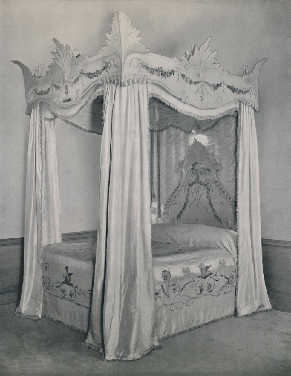 edifício · edifícios · interior · dentro · casa · estilo · cama · bedroom · quarto · projeto · dossel · século · para dentro · tela · thirties · decor · projeto interior · furniture · conceito · cama de quatro posteres · embroidery · retro · bedspread · monocromÁtico · casa de país · opulent · repouso stately · bordado · decoração interior · opulence · preto branco · preto e branco · 1930s · 20o século · photograph · unknown · geoffrey · holme · bed chamber · fourposter bed · geoffrey holme · bretton hall · c g holme · c. g. holme · c.g. holme · c. g. · c.g. · The Print Collector/Heritage Images |