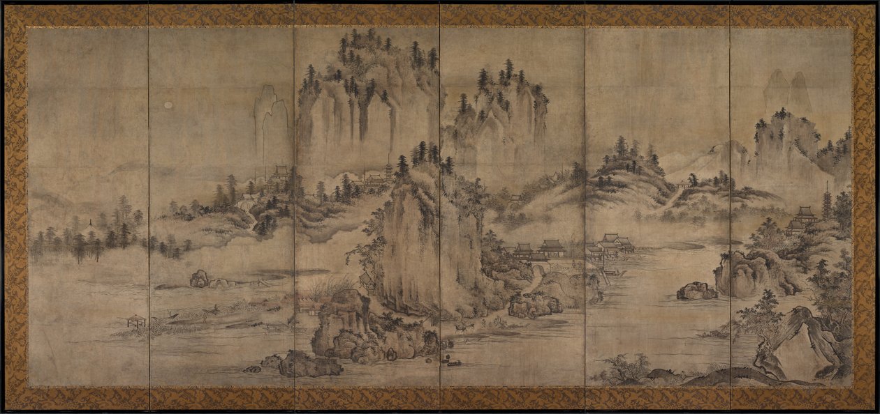 pintura · japão · unknown · painting · the cleveland museum of art · heritage art · ink and colour on paper · ink and colour on paper · one of a pair of six-panel folding screens · one of a pair of six-panel folding screens · 1392-1573 · Heritage Art/Heritage Images |