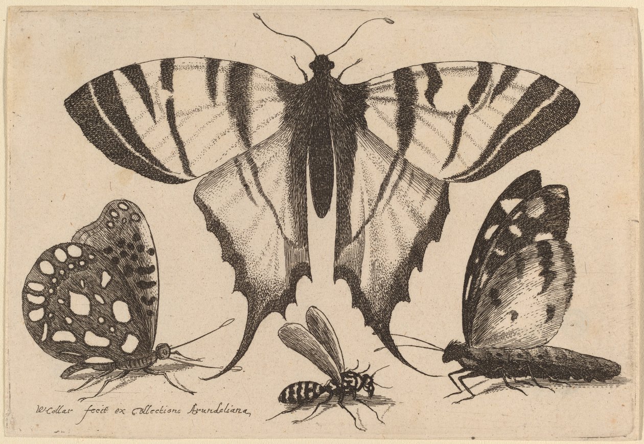 Duas borboletas, uma vespa e uma mariposa(Two Butterflies, a Wasp, and a Moth)Wenceslaus Hollar |