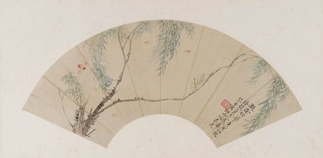 Em um ramo de salgueiro, dinastia Qing, provavelmente 1770 (tinta e cor no papel)(On a Branch of Willow, Qing Dynasty, probably 1770 (ink and colour on paper))Yuan Tong |